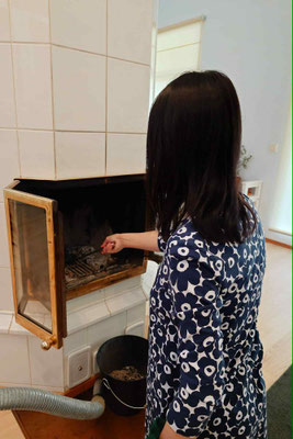 私たち家族は昨年12月に、アパートから暖炉のある一軒家に引っ越しました。朝晩の気温が氷点下になってきた今月、私は「自分ひとりで暖炉のお世話が出来るようになりたい!」と思い立ち、手順や注意点を夫や夫のお父さんに聞きながら練習してきました。まずは前日も暖炉を使った場合、暖炉の中のお掃除から始めます。専用のスコップで炭をすくい、取りきれないものは暖炉用の掃除機で吸い取ります。きれいになった暖炉に新しい薪(庭に保管して、使う数日前に家の中で乾燥させたもの)を組んで火を付け、時々ふたを開けて均等になるように棒で突っつきます。暖炉に火を入れると朝まで暖かく、床下にあるセントラルヒーティングの温度を下げられるので、我が家の電気代の節約にもつながります!これまで夫立ち合いのもとで練習してきましたが、今日から夫は3日間出張のため、いよいよ私がひとりでお世話することになりました。安全に気をつけて頑張りたいと思います。